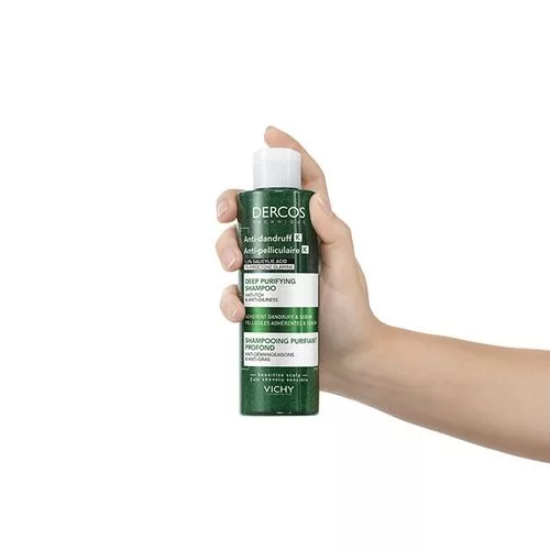 Dzięki delikatnej formule złuszczającej DERCOS SZAMPON PRZECIWŁUPIEZOWY K eliminuje widoczny łupież i jego pozostałości, nawet te przylegające do włosów i skóry głowy.