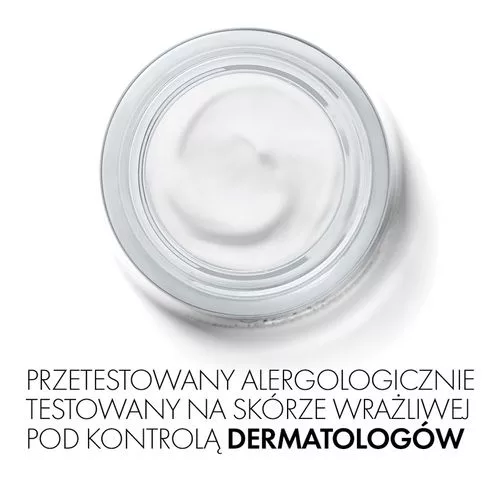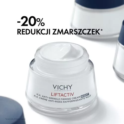 ROZWIĄZANIEM VICHY jest nowy, PRZECIWZMARSZCZKOWY KREM UJĘDRNIAJĄCY Z KWASEM HIALURONOWYM NA NOC działający na drobne linie, zmarszczki oraz utratę jędrności na skórze twarzy.