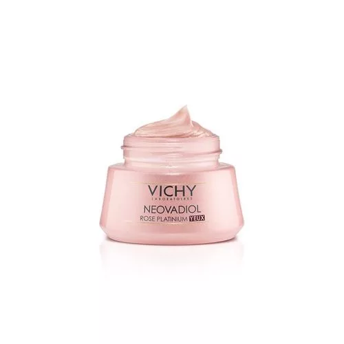 Przywróć skórze pod oczami blask i witalność z przeciwzmarszczkowym kremem do okolic oczu Neovadiol Rose Platinium Oczy! Ten odżywczy krem pod oczy z różanym pigmentem został stworzony przez ekspertów VICHY, aby zredukować opuchnięcia i cienie pod oczami oraz widocznie wygładzić zmarszczki. Formuła zawiera silne składniki aktywne: redukującą opuchnięcia kofeinę, wzmacniający wapń i kojącą wodę wulkaniczną Vichy. Efekt? Skóra wokół oczu jest wygładzona, zrewitalizowana i rozświetlona.